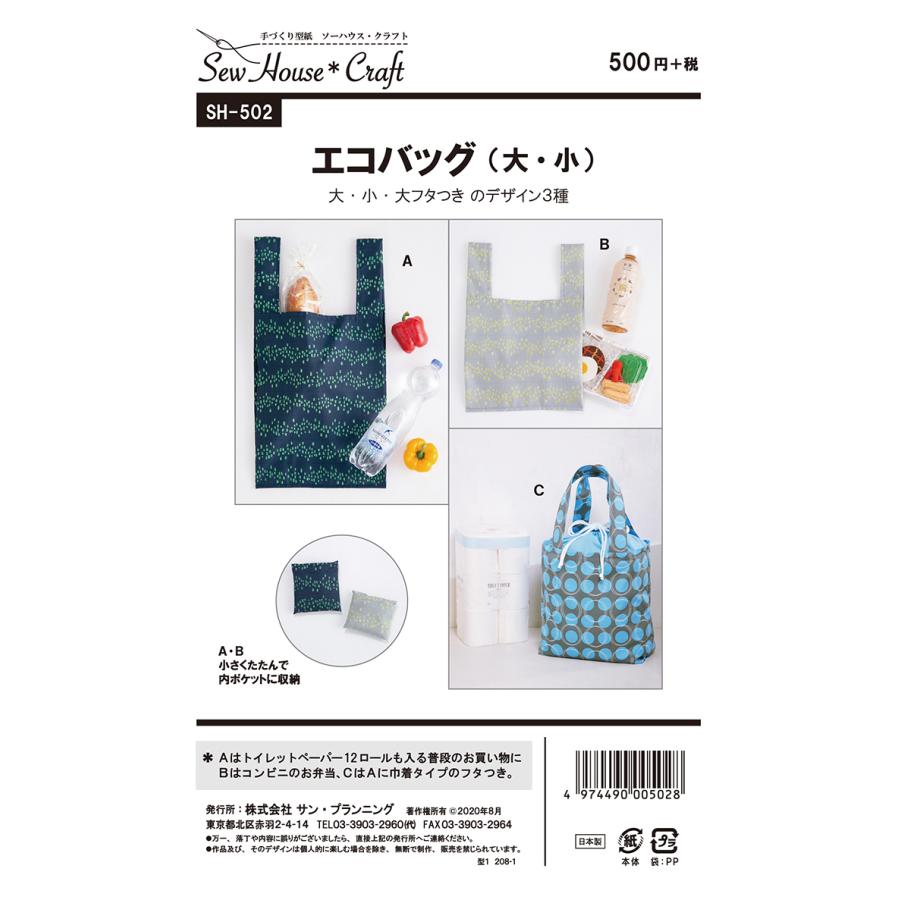 型紙 パターン エコバッグ 大 小 Sh 502 Sh502 クラフト楽園 サンプランニング 大人 子供 ベビー 赤ちゃん 作り方 洋裁 手作り バッグ作り方 Sh502 あなたの街のミシン専門店創作工房 通販 Yahoo ショッピング